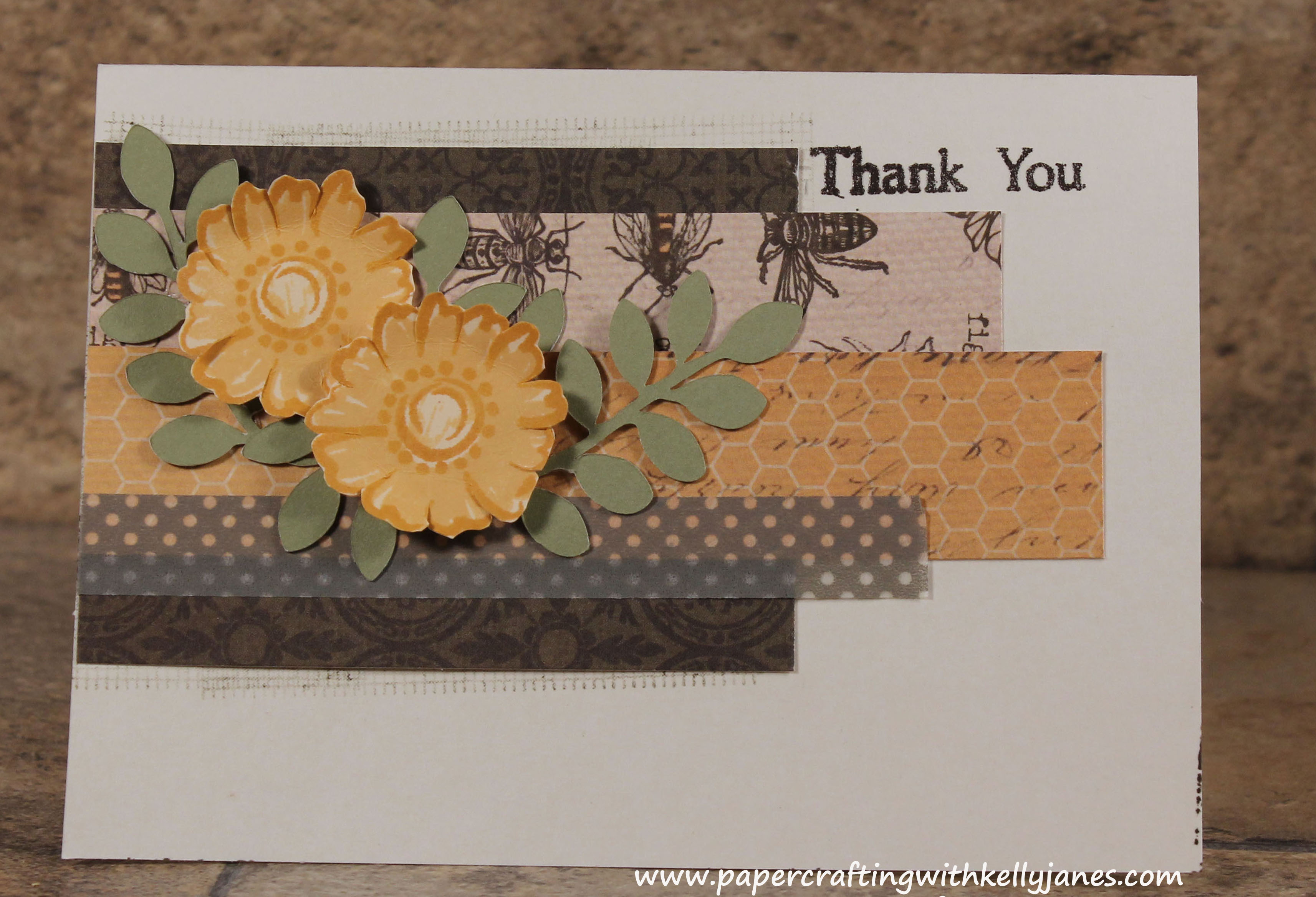 The Thank You sentiment is stamped in Versamark and heat embossed with Cocoa Embossing Powder which also happens to be retired. BUT the great news is now that CTMH has the awesome collection of mini pigment inks you can re-create an embossed image using the Cocoa Pigment Ink (that is included in the Basics Exclusive Inks® Mini Pigment Pads Set) and the Clear Detail Embossing Powder. By using the Clear Detail Embossing Powder with ANY of the pigment inks you can create a shiny embossed image in any color from the CTMH color palette!!! You’ll get the color from the pigment ink and the shine from the Clear Detail Embossing Powder.