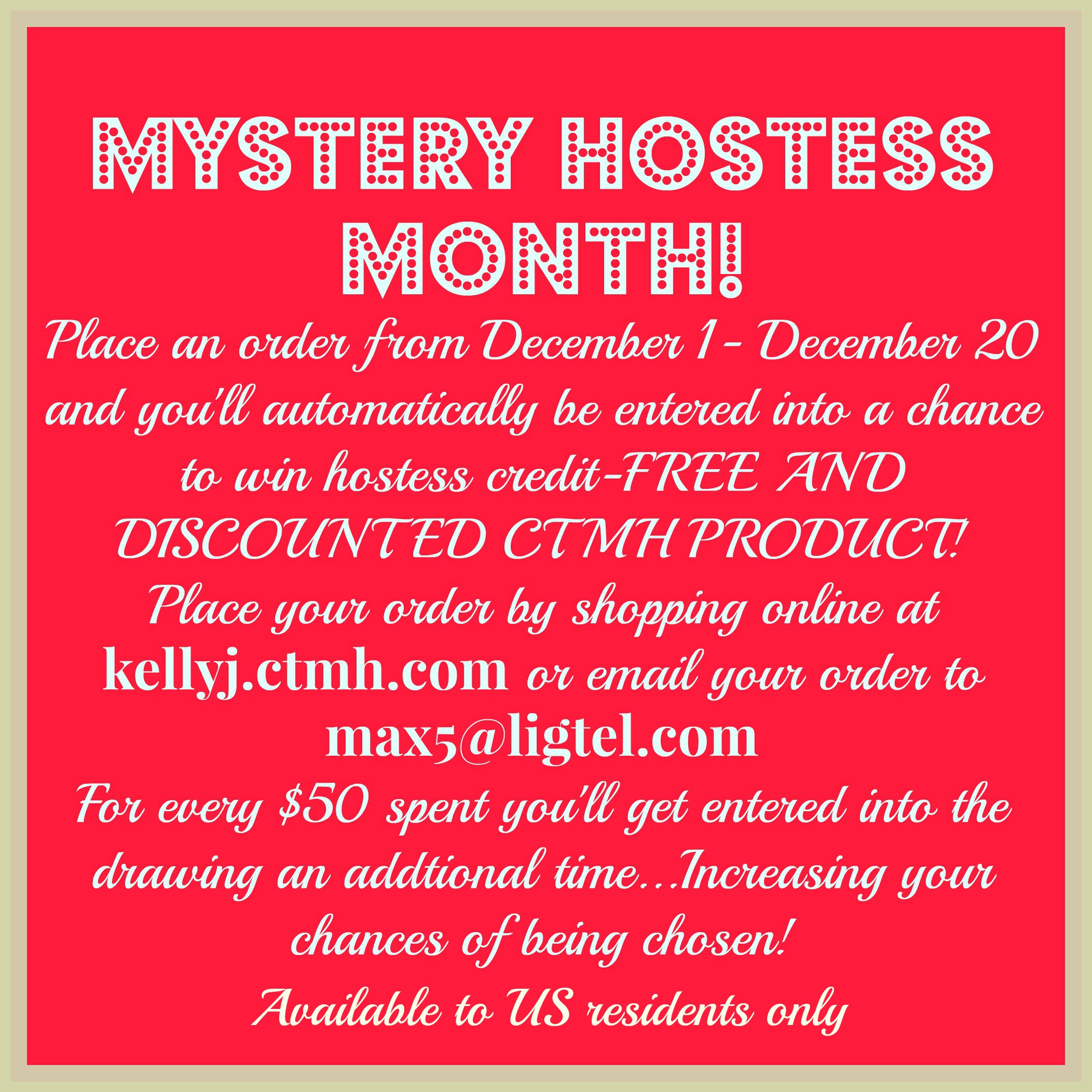 **DECEMBER IS MYSTERY HOSTESS MONTH**