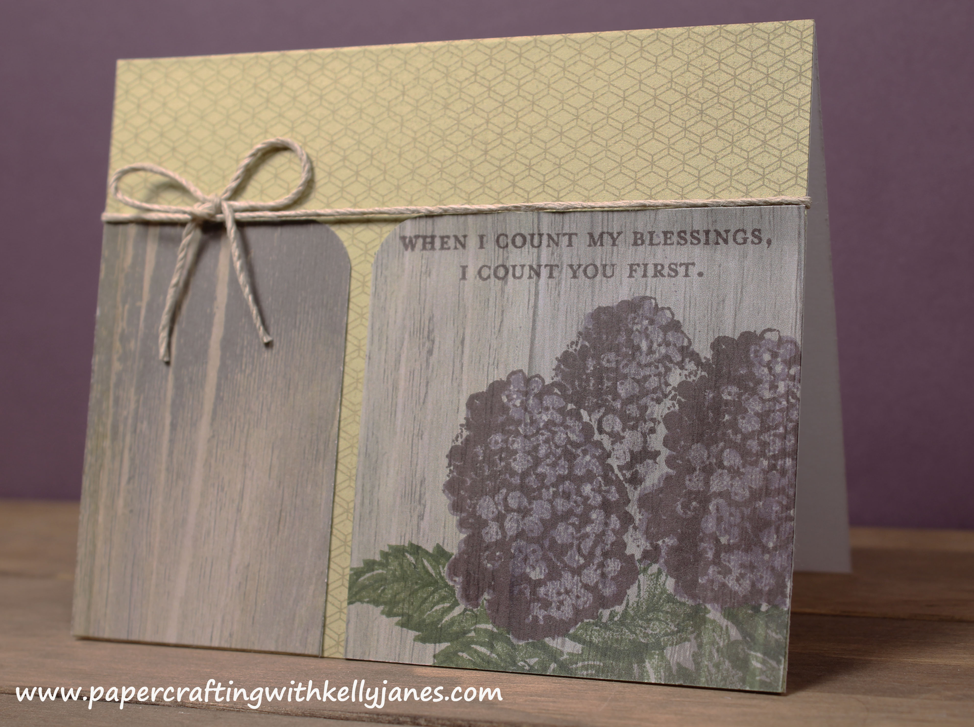 Let me start with the paper….There are a total of SEVEN new collections in the new Idea Book, and this card features two of those new paper packets!! The woodgrain comes from the Timberline Paper Packet, and the green pattern paper comes from the Ariana Paper Packet.
