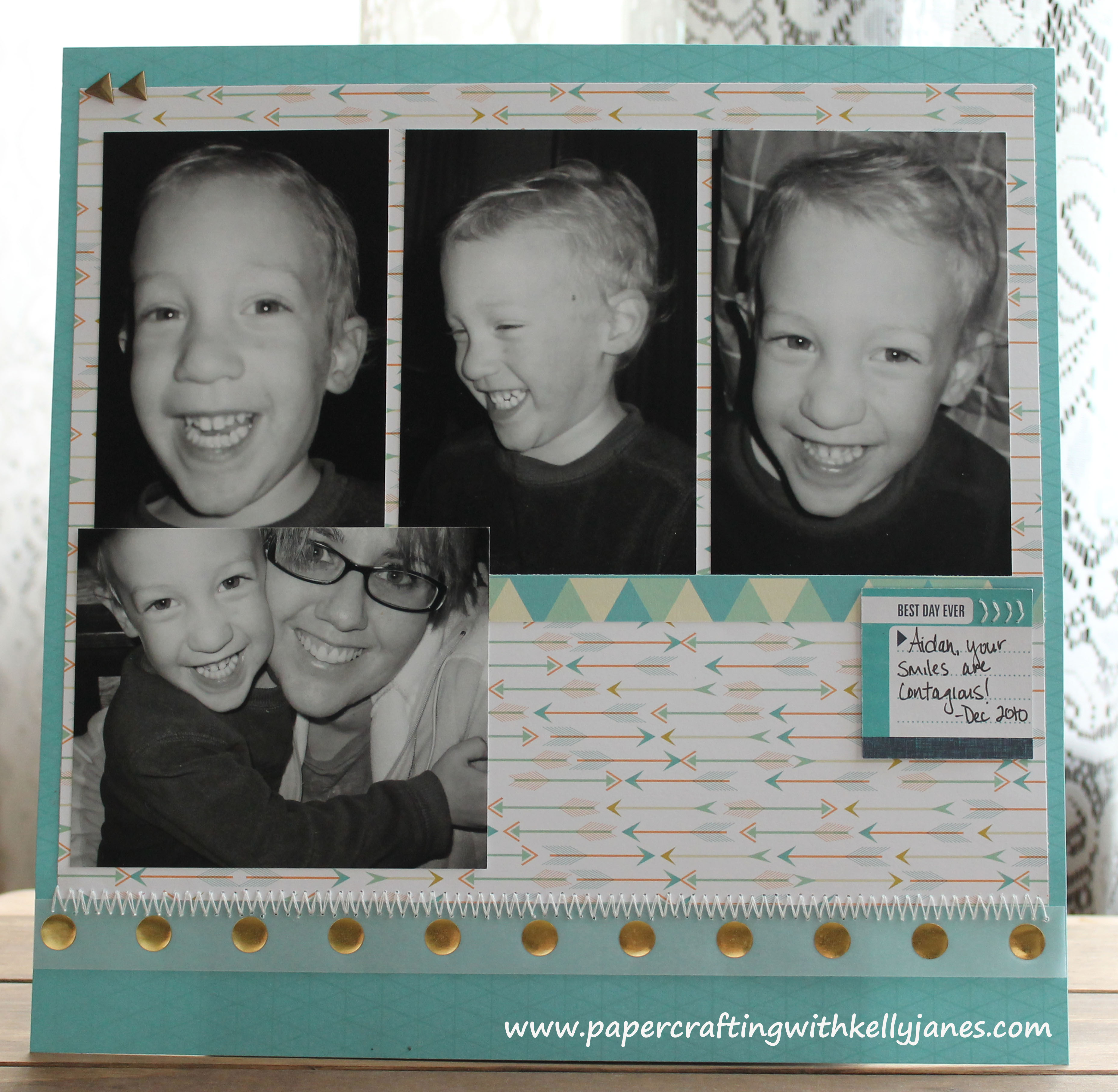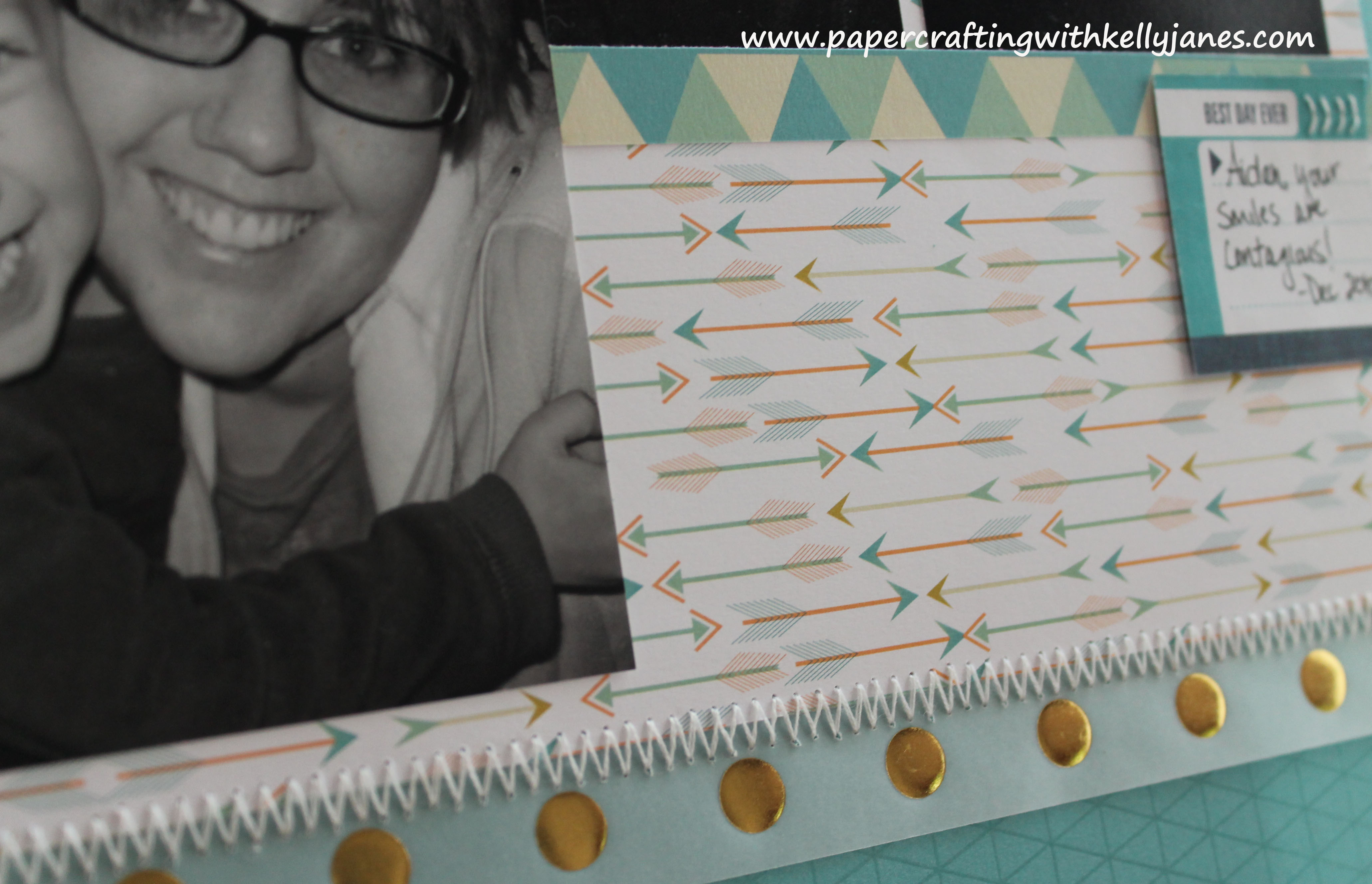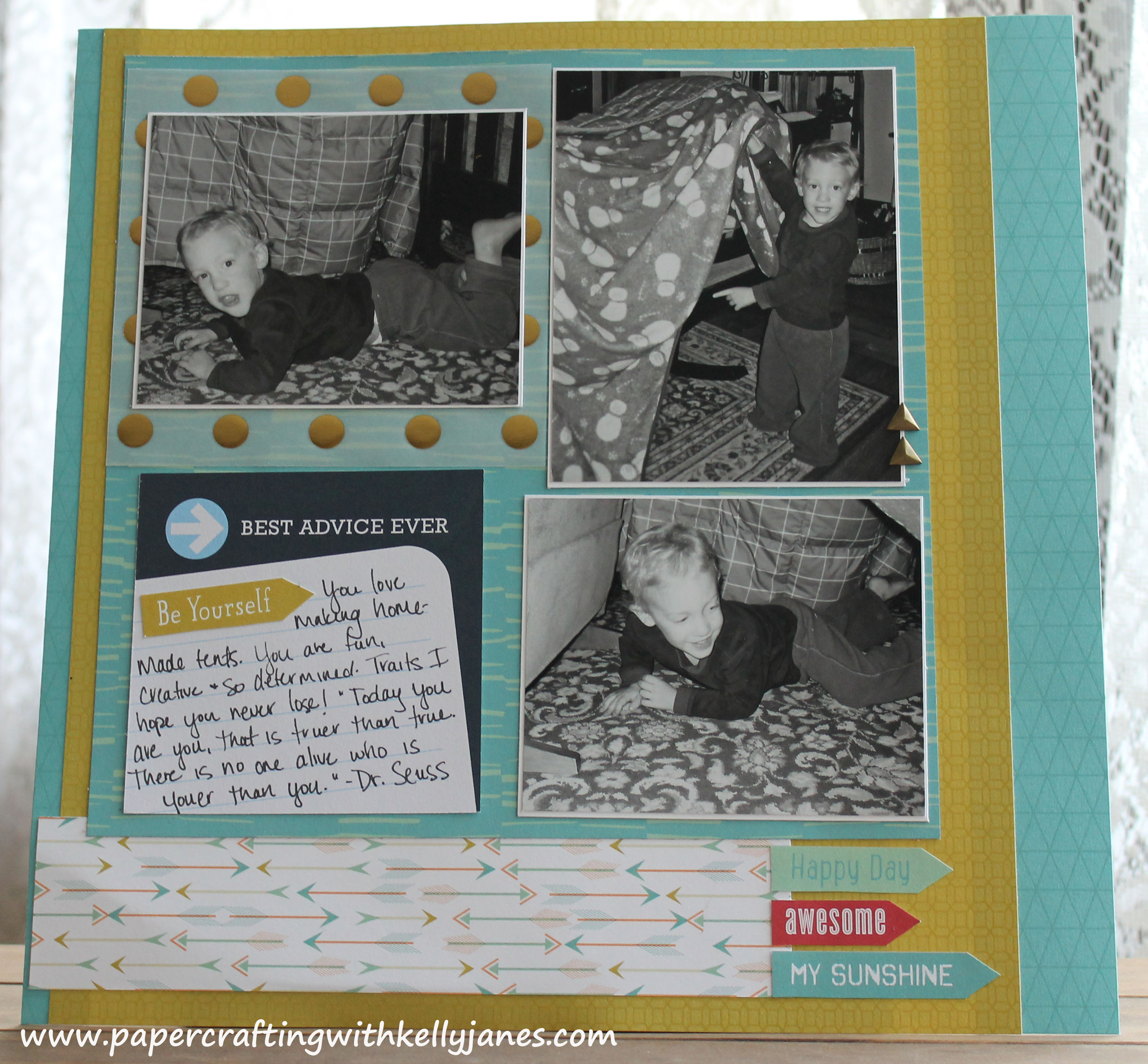 Today I wanted to show you a two page spread I made using May’s National Scrapbooking Month’s promotional paper packet, Free To Be Me. Close To My Heart has great products including quality acrylic stamps and inks, but I know stamping is not for everyone. These layouts showcase that you can still use CTMH’s products without stamping!!