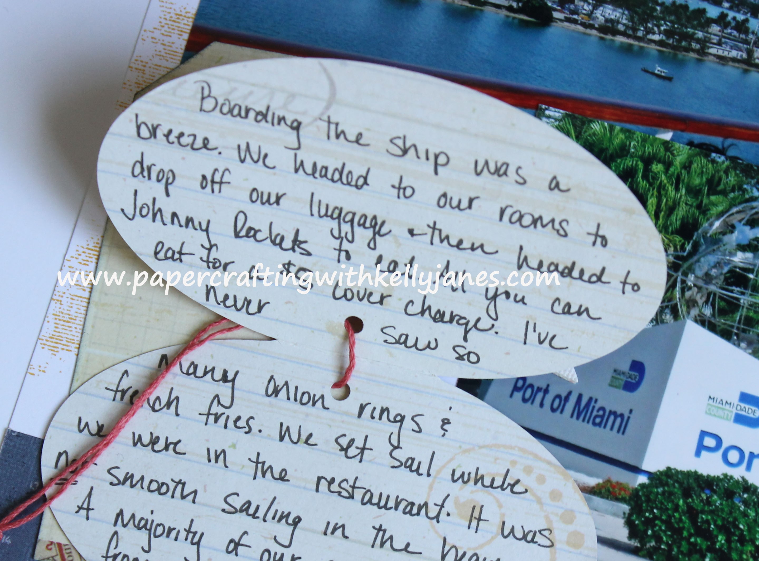 The journaling is hidden underneath the red tag. I’ll simply cut a slit in my page protector and slide the top portion of the oval through the slit for easy reading. I’m not a fan of my handwriting, but I think it is important to include it in my scrapbooks. I like the look of the typed journaling, but then I think about how special the items that have my great-grandma’s handwriting on them. I think about how disappointing it would be to see those words typed, and I’m hoping my scrapbooks will be passed down through the generations!! There is just something so personal about a handwritten message, and I hope my great-great-great grandchildren will feel the same when they are flipping through my scrapbooks.