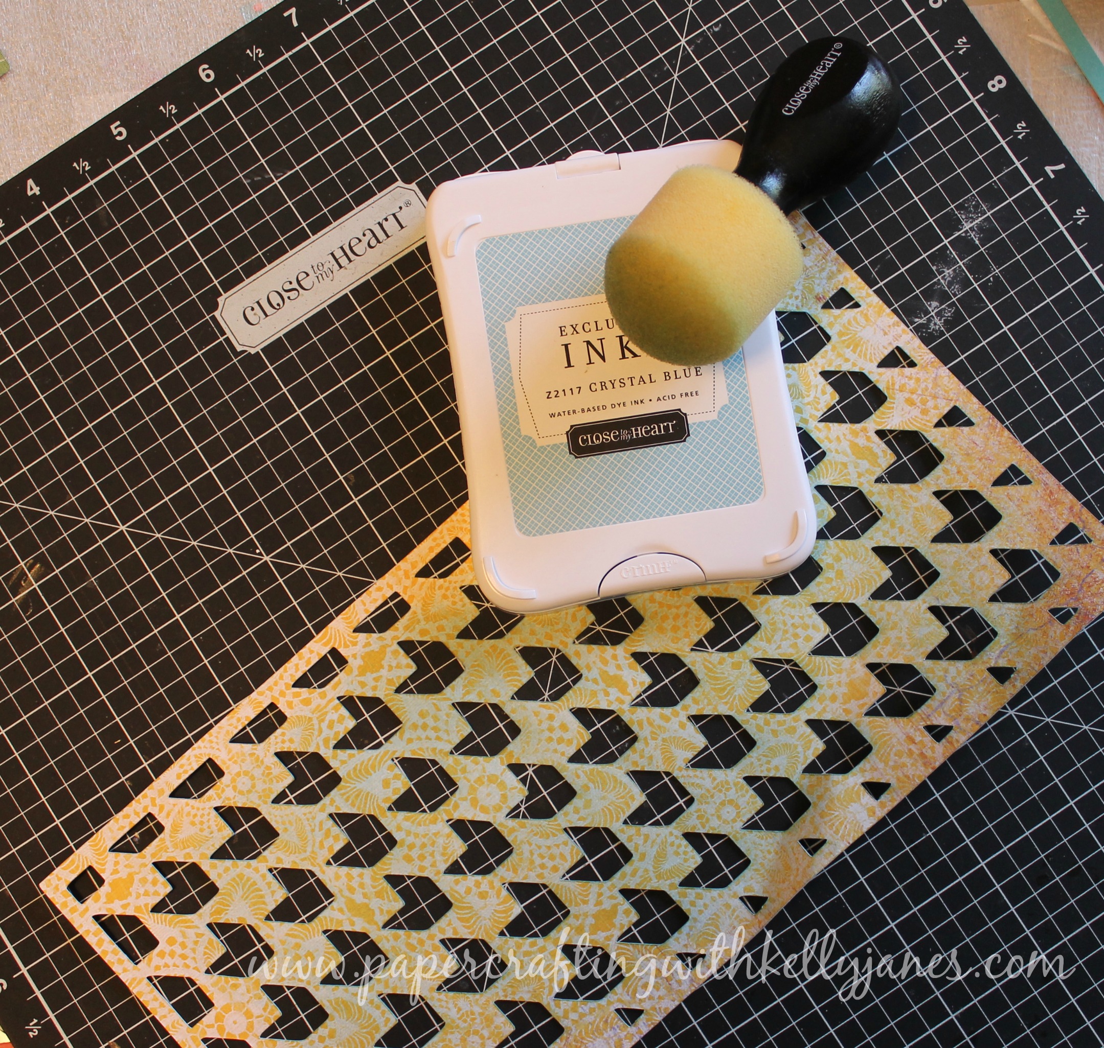 I’m a scrap saver and so glad that I am!! I cut an image while working on another project using the Jubilee Paper Packet*, and I ended up not using it on that project but threw it back in the bag. I grabbed it for this project and used it to distress the Crystal Blue Cardstock. I used a tool from the distress kit {retired}, but a Round Sponge will work just as well.