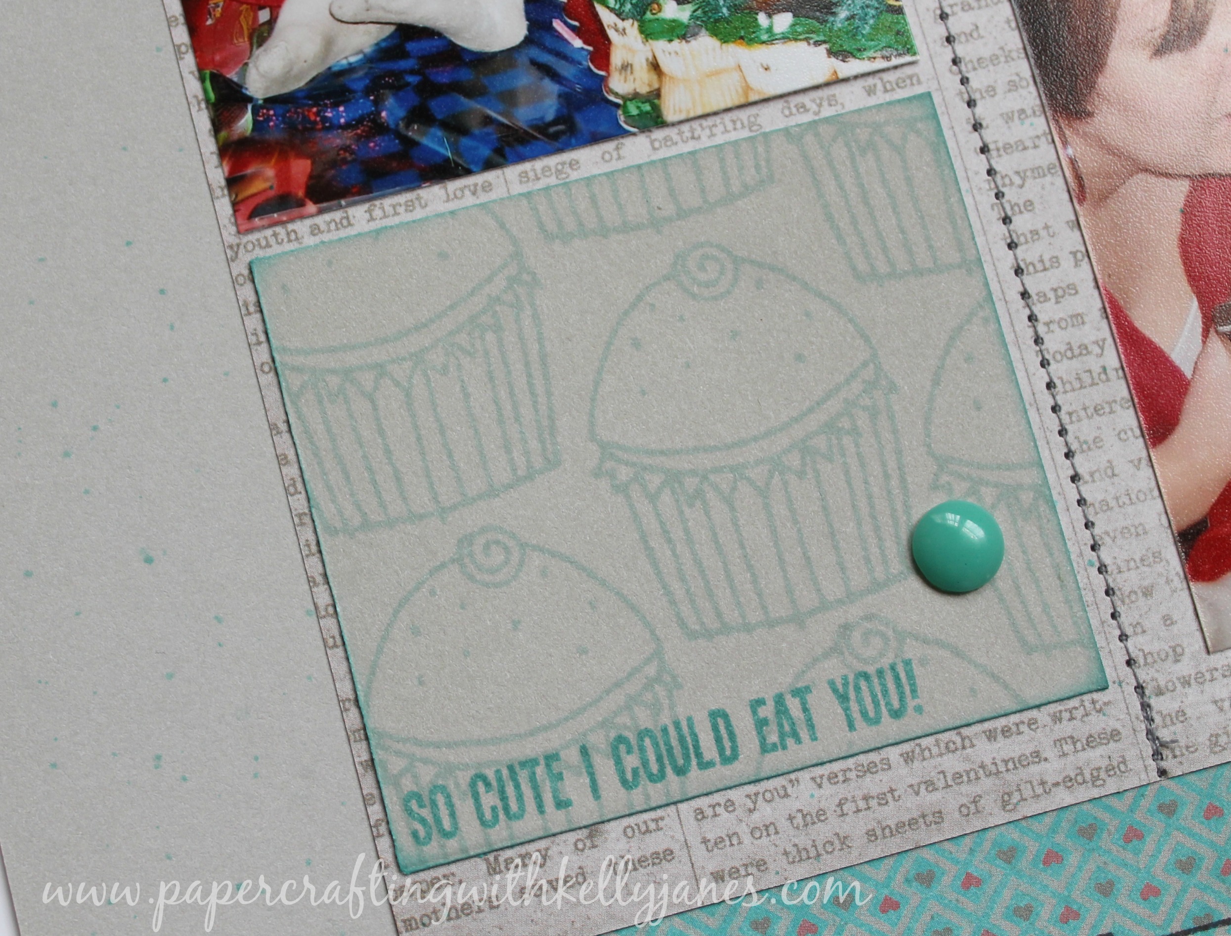 I tossed a few Aqua Dots and added grey stitching using my craft sewing machine. This layout is so adorable in person…I feel like it’s nearly impossible to catch it with a photo.