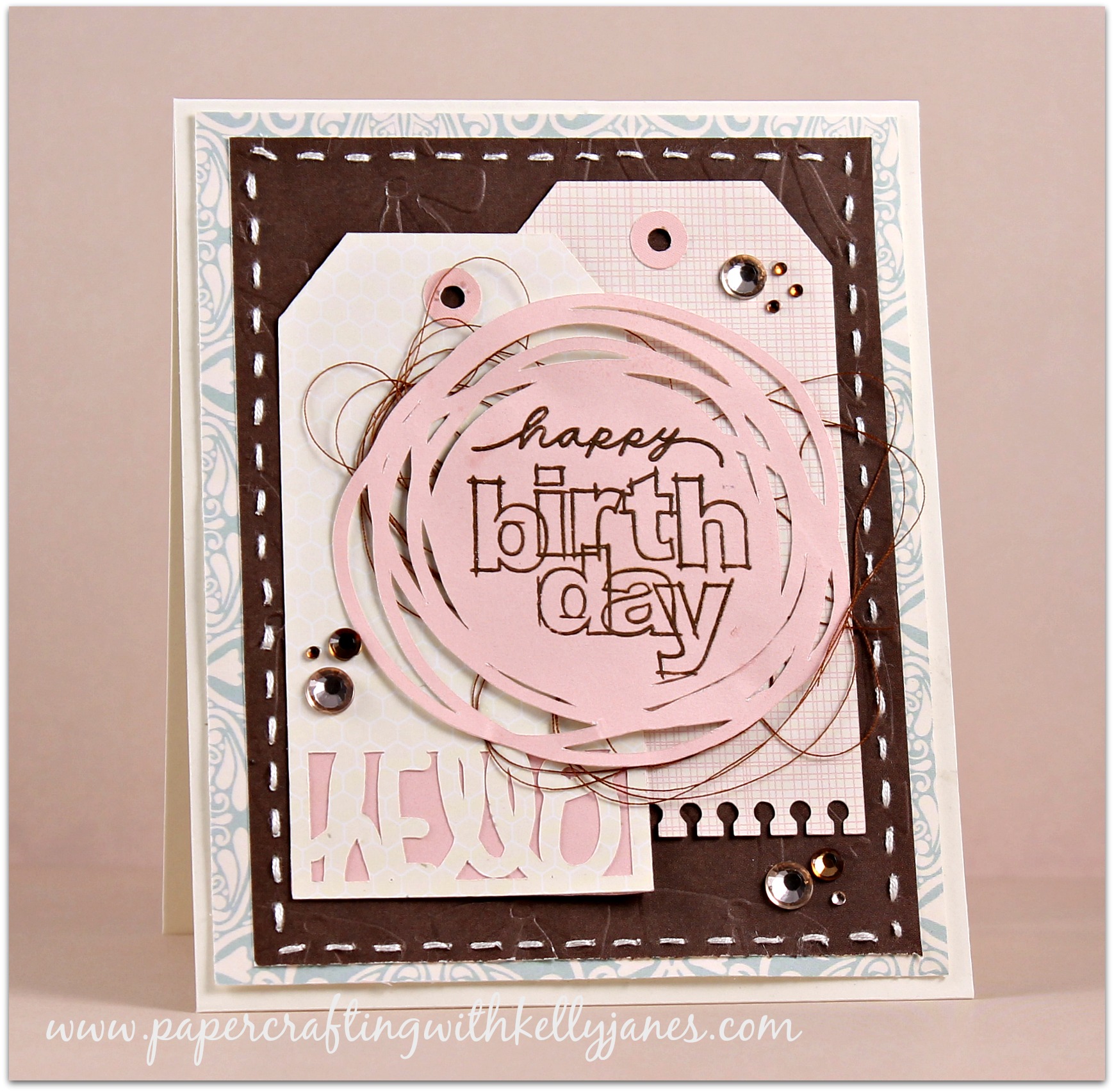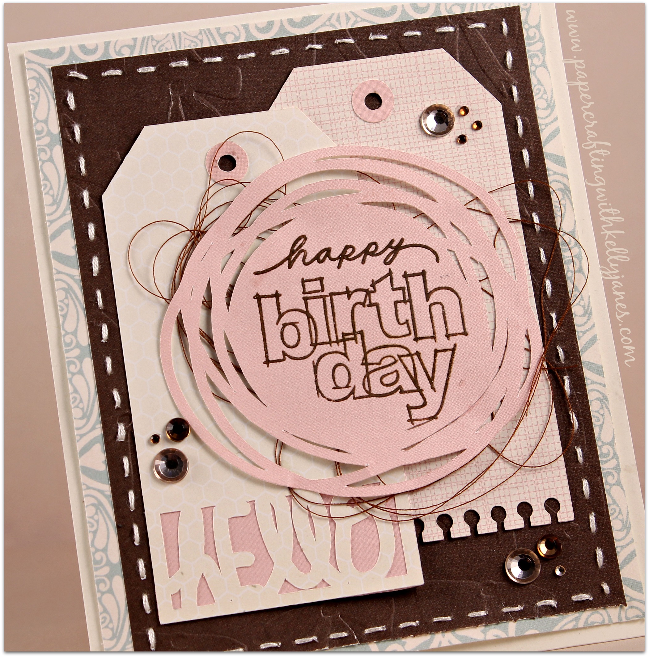 It’s time again for another Atlantic Hearts Sketch Challenge!!! I started with a Colonial White Cardstock base and added patterned paper from the same paper pad that I used for Sketch #130. I cut the tags from a cut file that is available through Big Picture Classes designed by Ashley Horton and the scribbly circle is from another cut file that is available through Paper Issues. I used an American Crafts-Dear Lizzy bows embossing folder for a little texture and also hand stitched a border around the chocolate color paper. The sentiment is a (retired) CTMH M-sized Stamp Set heat embossed using Chocolate Pigment Ink & Clear Embossing Powder. For final details I wound some chocolate colored thread and tucked it under the center sentiment and added a few clusters of Brown & Tan Sparkles.