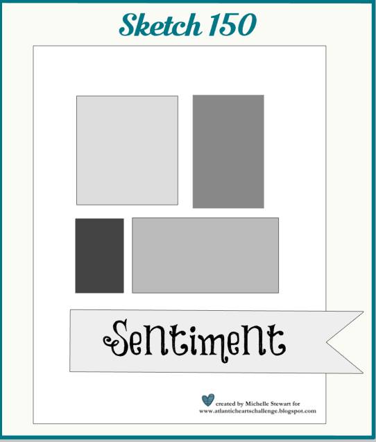 My card really took on a life of its own this week. I had intended on just switching out the rectangles for triangles but I couldn’t get a banner to work well along the bottom of the card so I opted to use a large sentiment instead. This is the thing I enjoy the most about sketches. They are intended to give you a starting point to spark your creativity. I would love to see your interpretation of sketch #150 so head over to Atlantic Hearts Sketch Challenge to enter today!