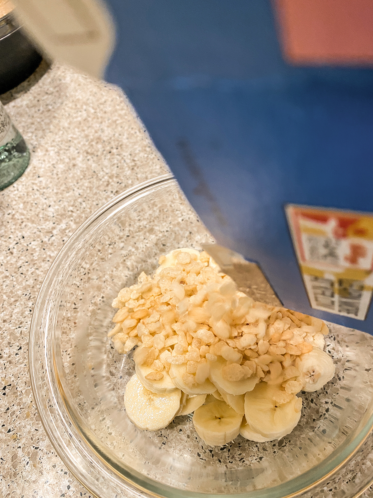 Late night (8 PM) snacks are a must. Right now I’m loving Rice Krispies with bananas.